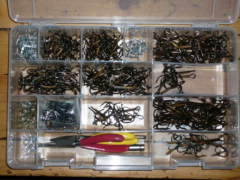 It helps to carry a good split ring pliers. One can always rob another lure of hooks and split rings.