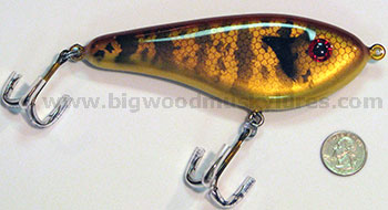 | Ben-E-Bait . . . if you can get your hands on these rare little beauties! Super easy to run, awesome paint jobs, internal rattle, drives the big girls nuts! Nailed a pig the very first time I threw one of these -- very first cast -- and ended getting a bunch. No longer made though, so tough bait to find. |