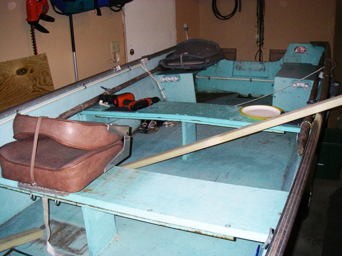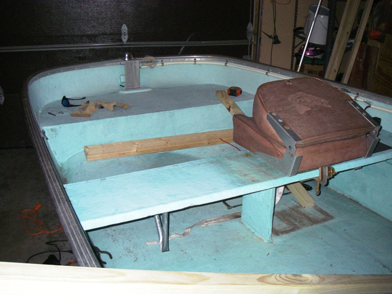Location: Rhinelander, Wisconsin | Laminate a couple T shaped 1X2" pieces where the seat was on the sides, that will stiffen up the boat considerably. |