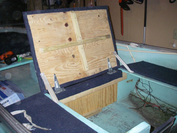 Here are some more shots...I finished up the front deck last night. Added support straps for the hatch so I don't stress out the hinge and makes it hands free. Now all thats left up front is finishing up the wiring, adding the trolling motor, foot switch, Lowrance ram mount and I am good.