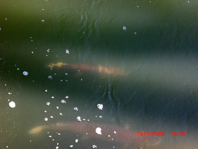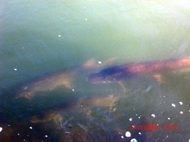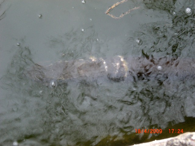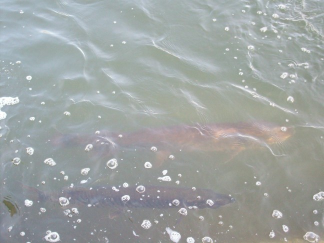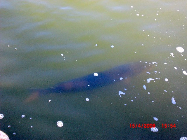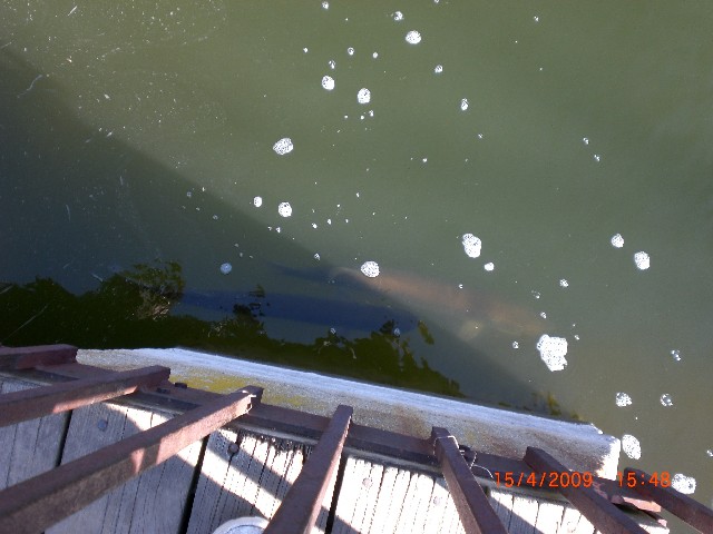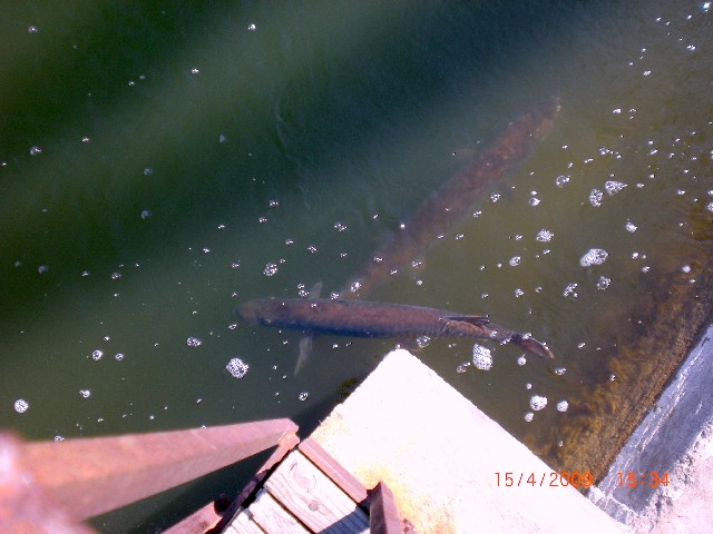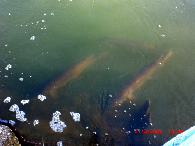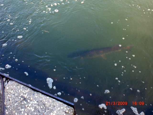 I was there this afternoon, got 30-40 pics, some will turn out alright. There were no less than 3 fish that were 48" plus, if indeed the cement pilings are that wide as suggested by a gentleman there.