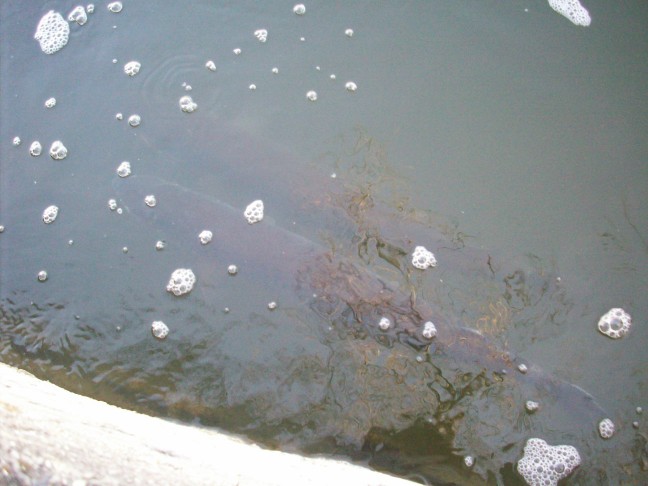 It depends on which pic your talking about, one of them there is prolly 2 45's and a lower 40, the other one is of 2 45's and the other one is prolly about 47-48 inches. I was literally 2-4 ft from them that day. Hopefully the water level drops so I can make my way across the spillway and see the big females in the corner. |