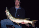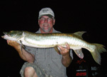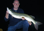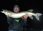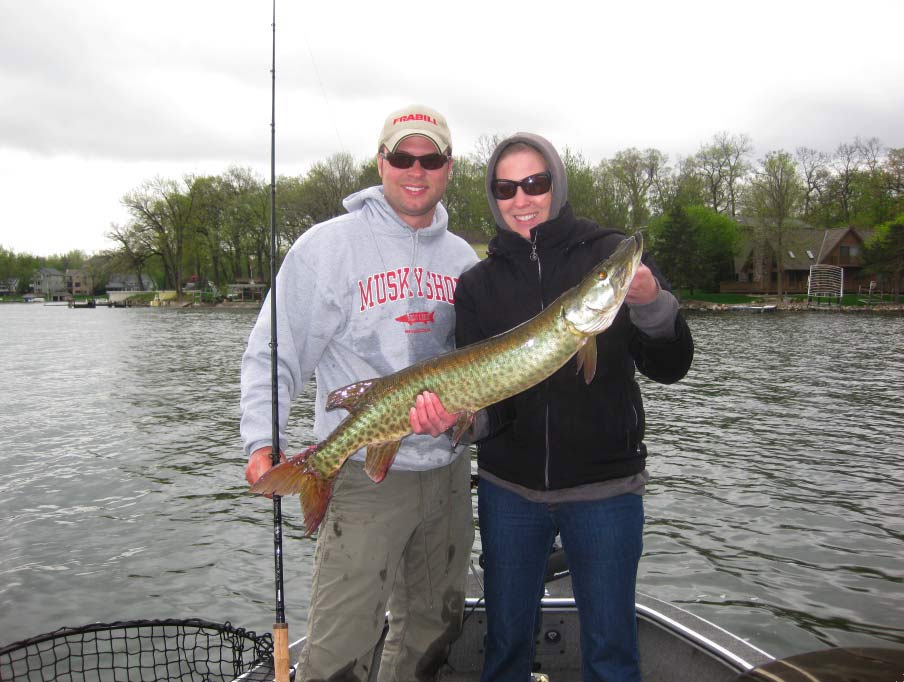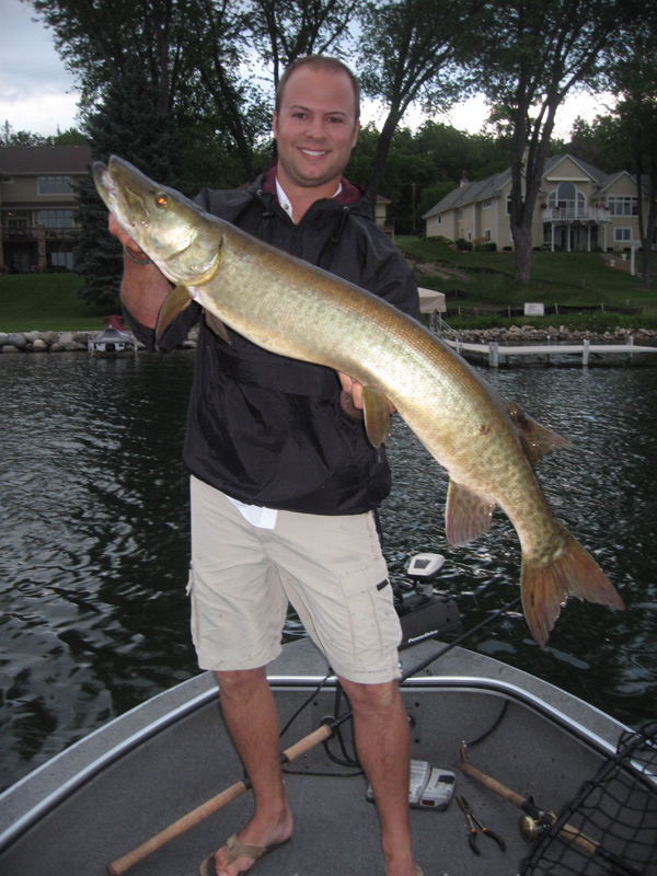 A 51 inch muskies was caught and kept by a kid off his pier 5/12/09 at 10pm using a jig and a chunk of crawler fishing for walleyes. The big fish are in there but they are layin low now.