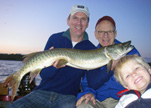 Location: Wauwatosa, Wisconsin | Pewaukee's been tough on me this year...had my share of follows but not much to show for it. I was taking my son-in-law out Friday night for his second-time-ever muskie fishing and wanted to do everything I could to show him some action. I talked to Mike Koepp who gave me some great info which was spot on!! We had a great time and fish in the boat! Mike is one great guy who is clearly dialed into the lake and the fish. Thanx again, Bro. Gonna hafta sell some lures so I can raise the cash to hire Captain Mike...I know it'll be worth it! |