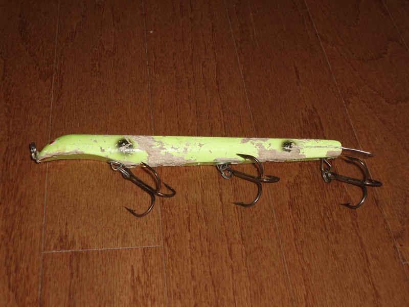 Location: Muskegon Michigan | Well It boils down to my favorite trolling bait and favorite casting bait. I have seen the word versatile used several times here. Remember this A jack of all trades is just a jack. In my many years of Musky and Pike fishing I have found that there is not one single lure that is tops in every department. Not even close. For me the best trolling lure of all time is the 6 inch Loke hands down over any other lure ever built . I have near 400 Muskies caught on Lokes since 1996. The one pictured here took over 70 of them and its still going strong 13 years later. I built my favorite Casting lure by accident trying to make a Crankbait I developed the Little Claw Twitcher. These 4 lures pictured have taken over 200 Muskies combined. The Tan perch one has 63 to its credit and has been recoated twice. I have one fish in my entire life on a Jake, zero on a double 10, 7 fish on Bulldawgs, 2 on Believers, 3 on Grandmas(all 13 inch models) The only Bucktail I have ever done real well with is the double #8 Shumway flasher. If I had to pick one I would cheat and take two. a LITTLE CLAW AND AN OLD LOKE. Kingfisher