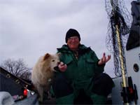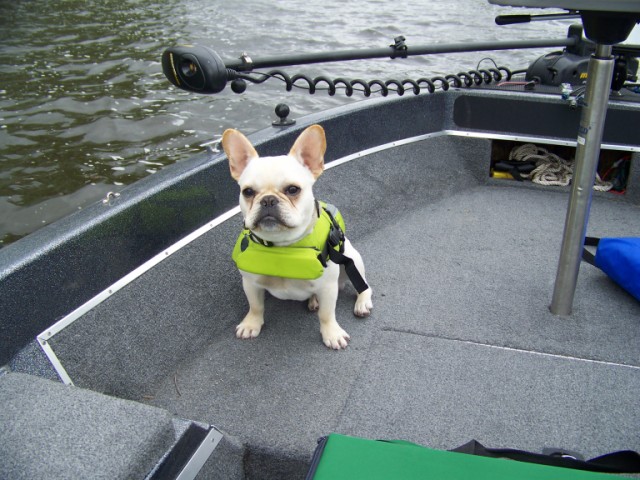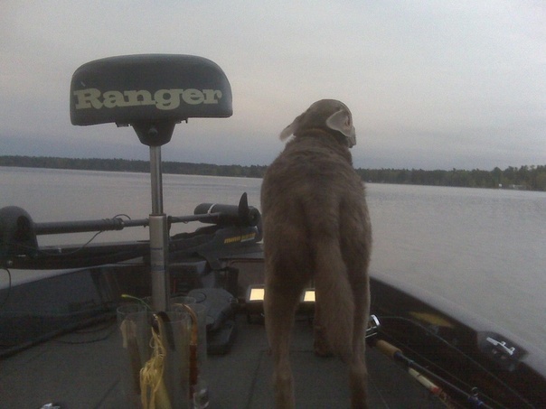 My dog that is always with me in the boat he gets mad if I leave him at home