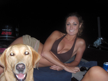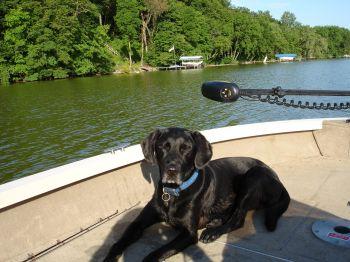 | I went out with my 3-4 yo beagle tonight. He loves going out, but we have only done it 3 times so far. Does real well. I got a deep-v with-out decks, so i bring a collapsible nylon crate he'll go in and lay down when he gets boared. There was a racoon, and beaver were we fished tonight. That got him fired up. I havent cought one yet with him in the boat, looking forward to that. That will get him figureing the deal out a little more. |