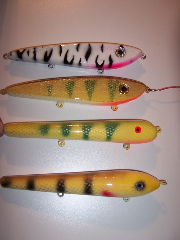 | Nice job Kevin, I like the first one,black and white, did you use a stencil to paint the black lines on the bait?