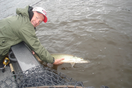 Thursday's fishing was hot and cold, depending on what boat you were in! Pete Maina and his pair of vets scored 3 in the morning, and Ed Spoerl's boat was visited by 5 muskies, including 2 45 inchers!