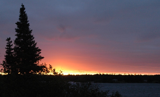 with a bit of cloud cover and a light breeze, the fish were much more active: with every boat moving fish, including reports of a few true giants...and a number of "biggest fish i've ever seen" stories were happening around the campfire. for all that activity, the lips were still tight, with one muskie finding it's way into Norm Wild's boat by Chris Piha and one finding itself the temporary guest of Dick Pearson.