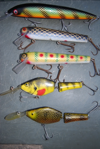 I still have the bottom two baits in picture #4 and the top three in pic #2 the rest are gone and in the mail to new homes. I'm open to other baits besides what I have listed aswell. I could use a Walleye colour shallow or standard Mag BullDawg. or a DBL #13 spinner in black/silver or something natrual. Let me know what you have.