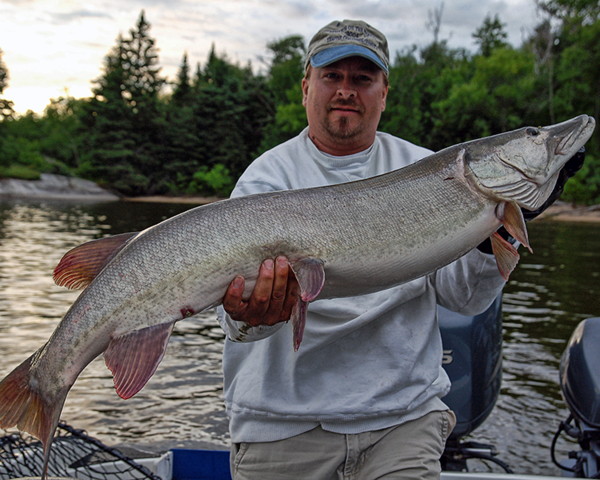 | I had a streak of 15 fish landed in a row. Last week on LOTW the first day of the trip I had a fish grab a spinnerbait hanging in the water as I was looking for my next spot to cast to. I couldn't tell if it was a muskie for sure or a pike, but since my thumb was on the thumb bar and not the spool, I didn't get hooks in it. I did manage to hook and land a fish every day for the next 6 days of the trip with a 49 incher being the largest. So I'm not sure if I've boated the last 21 muskies I've had hooks in or not, but I'm quite happy with the ratio I've got going. I'll ride it out as long as I can. Here's a photo of one from last week.