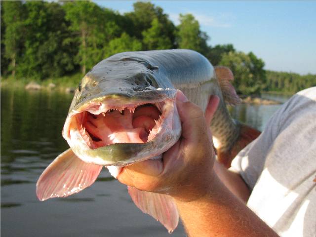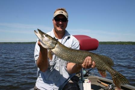 | Here are a couple of photos from last week on LOTW. The 45 was a cool jackpot fish and is super clean for coming out of LOTW. The pike is a 36.5 that ate a Mag Dawg on my new Okuma 9'3" extra heavy.