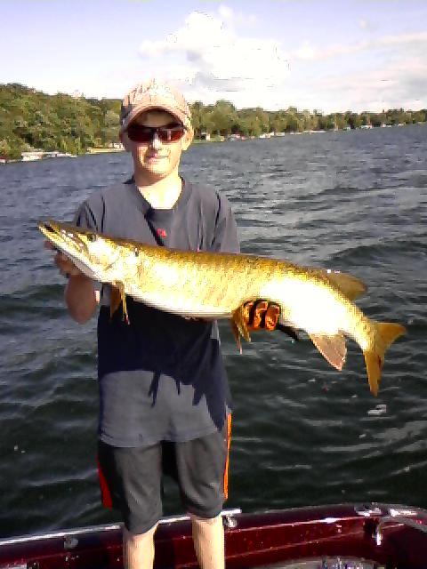 | 43in caught on our trip to Cedar Lake in Ontario.....my brother took this picture of my dad taking a picture of me = )