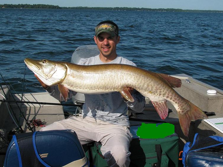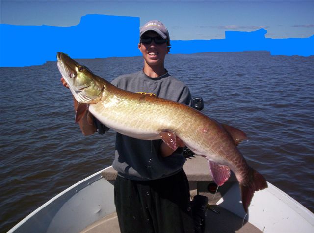 Location: Grand Rapids MN | Fished Vermilion this weekend. Got out late Friday night and landed a chunky 44" within the first half hour. Fished the rest of the night until 7am. Damp air, windy, and around 40 degree temps left us wearing every article of clothing in the boat possible. It is August, right?!? Saturday it was dead calm and sunny. Didn't move a thing. Wasn't until dark again when a fish blew up boat side but didn't get all of the lure. Sunday wind picked up and so did the fish activity. Moved 12 fish with many being big to very big fish but nothing would go. We called it quits at noon and never got a chance to go back on these fish. No need to block out the background since all the fish for me and my partners seem to be coming at night this year.