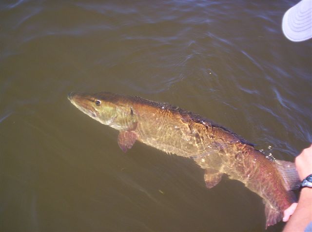 | Went out friday for 2 hrs got a 40 and a 36. Saturday went out from 6 to 830 had a follow and missed one on a topwater bait. Today went out from 6 to 11 had one miss on a weagle, another follow and a very nice fish on high 40 to 50in fish all the way up to the boat and at the last second it threw the bulldawg. Still sick to my stomach about that fish and all of the missed oppurtunities I have been having lately. But all in all two fish in 2hrs was nice and to get to see a fish like that was alright too. Who am I kidding losing that fish sucked!