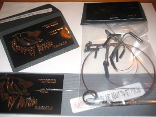 Have found a glaring problem tip up fishing with the Bigtooth Rigs. If you spread the two treble hooks out towards opposite sides you have a large distance between hooks (the rigs I have are over a foot gap.) Many times if I only got one hook in a pikes mouth, especially the big ones, the hook that was un-attached sometimes wound up in the pikes back or belly about a foot away from the mouth. These two hooks, if spread out like I mentioned, made it impossible to pull a the pike up a tip up hole. Its tough to explain but it occurred quite frequently on some of the big fish when they rolled or did head shakes. This may not matter for open water fishing, but it made tip-upping very problematic.