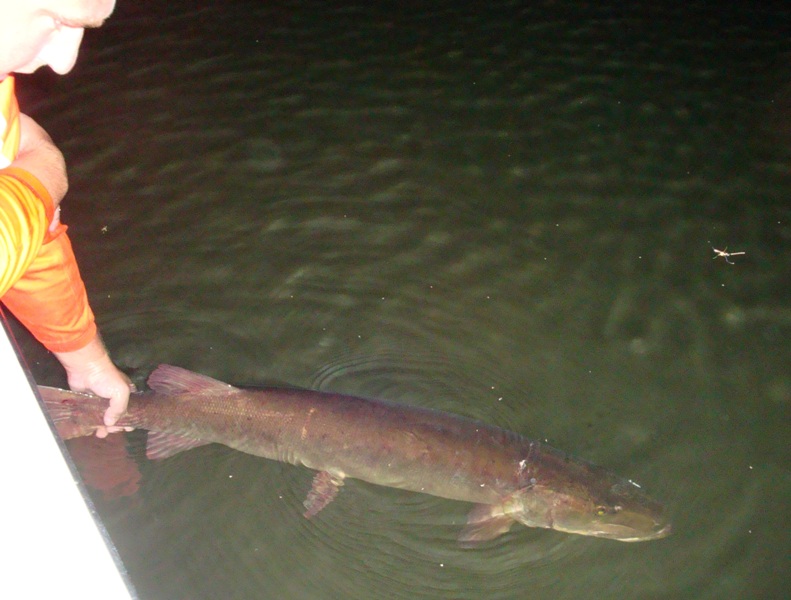 Got out tonight for a few hours. Caught a 43 incher on a topraider, on the last spot of the night. That was the only fish I saw.