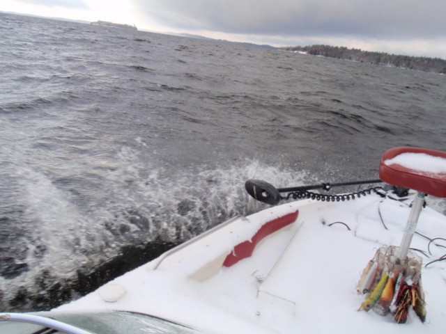 | Too much scattering of baitfish...no pod clusters....Daisy bay was iced over Sat morning ..but did unthaw midmorning......I prefer some falling water temp...watertemp now is at the end and stable...I have been doing the troll up there for many years now and have a good idea when to be there...have caught one monster fish the day before complete iceover but odds are low trolling....heard there is still a dawg bite up there...but dont need to take hooks out of those size fish.... |