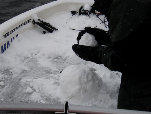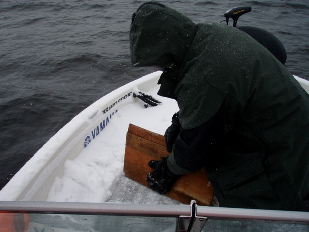 We also fished the last two days of the season on the big V! We got one 45 trolling on monday and lost one about 48. The snow was crazy. We had about 3 inches in the boat! Sunday was the day to be fishing! We got a 46 right away then a monster 52. Next spot produced two 44's, then back to the first spot at sunset for a fat 48! What an amazing fishery and a great way to close the 09 season! Pics to follow! |