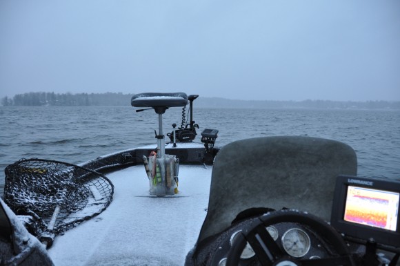 Started at 9:00 and then it started snowing, and blowing, well on Big Bay anyways,