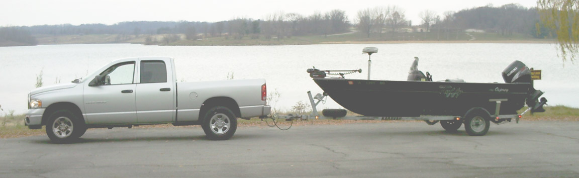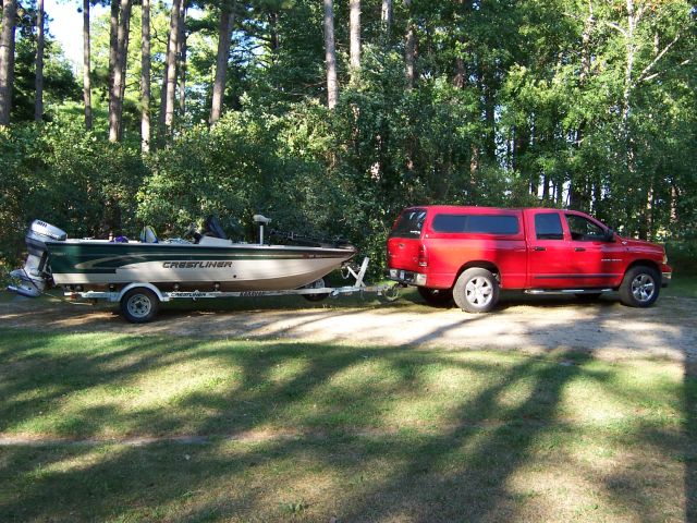 Location: Elk River, Minnesota | 2005 Alumacraft Navigator 165 with 90 hp Yamaha, Shoreland'r 2300# trailer, all behind a 2003 Ram Quad Cab. I love the fact that this truck (I feel) can pull just about anything. I also now tow a 28-1/2 foot 5th wheel....out of overdrive with either set-up. Next truck will be (crossing fingers here) a one-ton single rear axle to tandem pull.