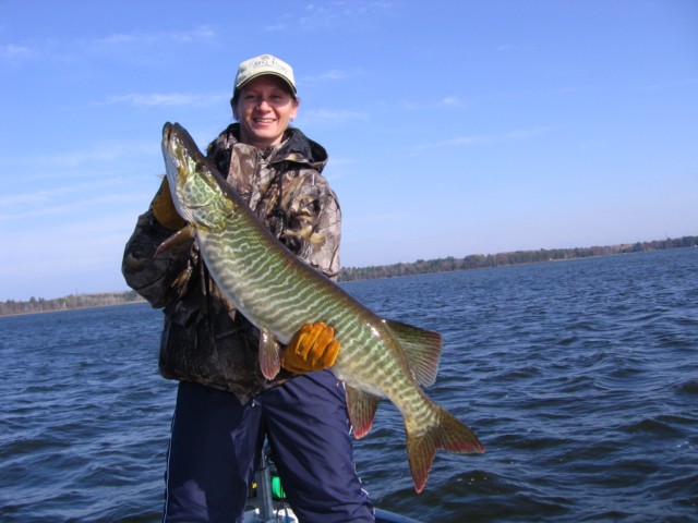 Location: Birchwood, WI. | Here's a couple pics of my girlfriend mickey's 40" tiger. Beautiful fish, her first tiger.