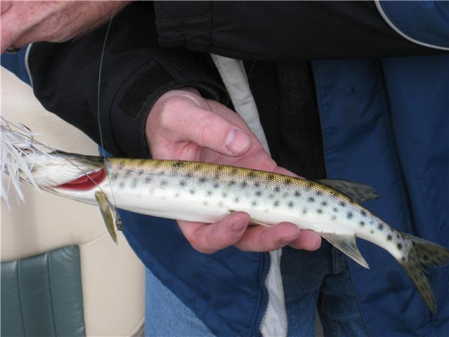 I like the white edging on the fins, it reminds me of a brookie. This fish is as pretty as I've had in my boat, but still not my ideal  I especially like a fish with a very defined belly line where the sidewall color transitions into pure white belly.