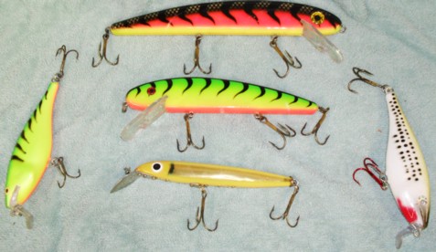super shad raps, orange and minnow kickin minnows, orange and chart. storm twisters, and all the spinnerbaits are stll for sale