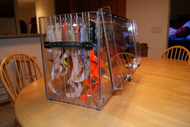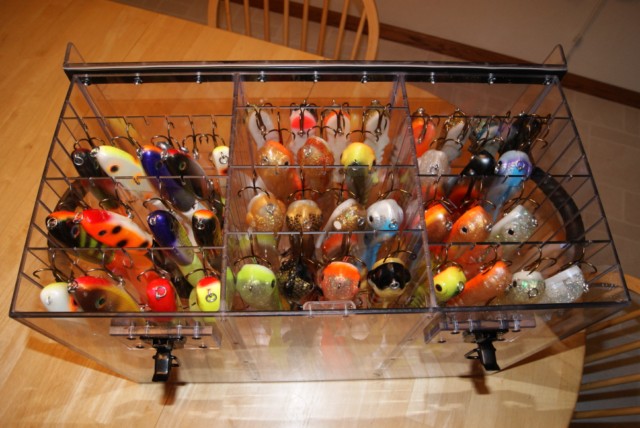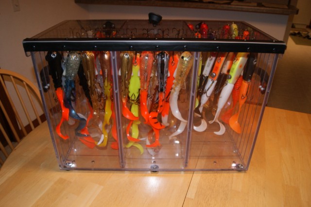 Location: Appleton | I picked up some custom show Dawgs, a Hot Wings from Lee Lures, a Slammer Tackle sweatshirt, and a new Just Encase to house my Dawgs and H2o Hard Heads. Great box and I can fit a bunch of baits in it.