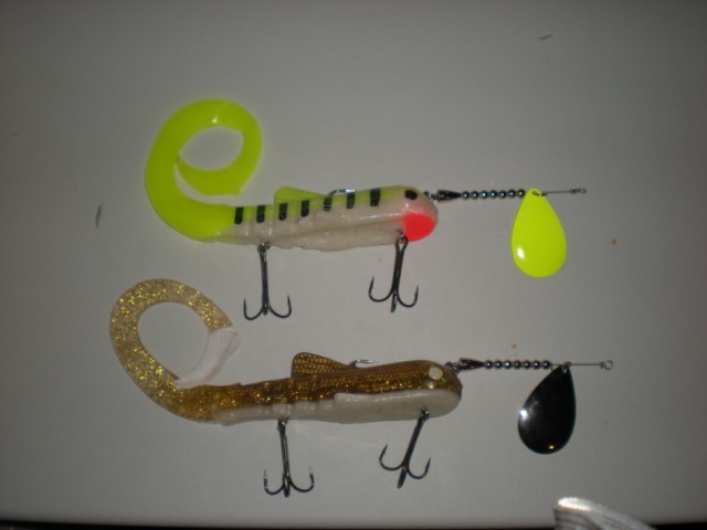 Location: Land of the Musky | Real easy to make those teasers for swimbaits. Just grab an old double #10 bucktail or buy a cheap one off eBay and use the components. Snip the wire and strip it and then shorten the wire up and use the spacers and blades and walla, you got it. I thought Shack Attack had them but I do not see them on Andy's site anymore. |