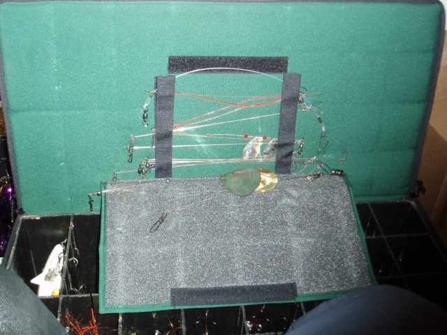 Location: Van Buren, Indiana | I use the empty flavored drink ( like Kool Aid) containers from Walmart. The Stealth leaders fit without hardly bending, I also use them for extra 10 blades, sinkers, glow beads. It's a good way to keep sucker harness'es and regular leaders seperate, and it does't take up as much room as a plano box. |