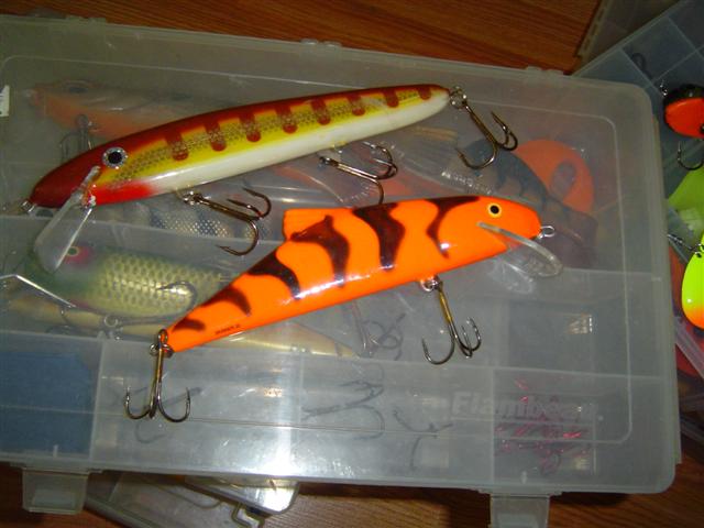 Location: Madison Wi. Chain | I will trade you a magnum bull dawg white with red tail and a jointed believer for the big game and the reef hog (top right). BG |