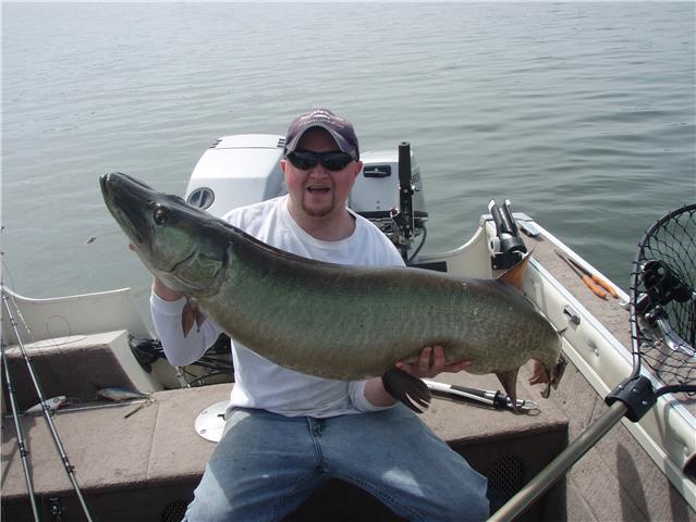 Location: Sw Pennsylvania | Spent the day fishing with good friend Paul Fec and his son Christian on a PA lake. Trolled most of the day with no action, about 30 mins before we were ready to call it a day my side rod ripped off some line and within 2 mins this fish lay in the bottom of the net. I give more credit to this catch to Paul and Christian then i do myself. This was a team effort to catch this fish, i didn't catch the fish alone, we all caught this fish. The fish took a 5.5 jtd Wiley. The dimensions were 49" by 27.5" girth...Also the fish was successfully released after a few photos and swam away rather impressively if i must say so.