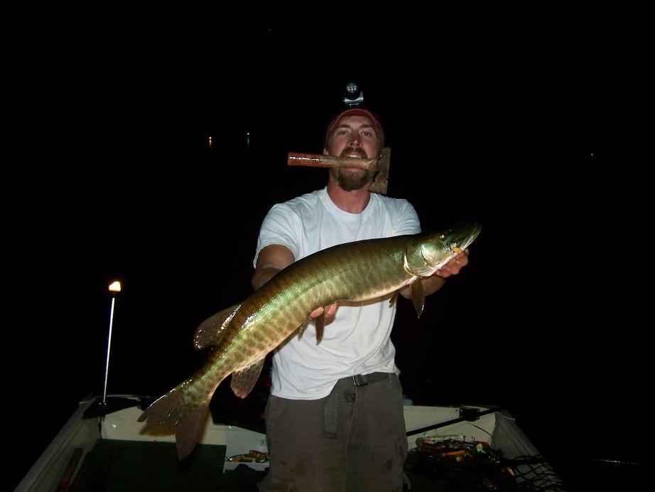 | Team Tapaito was on fire last night!! only made it out for the evening then got pushed of the lake by the storm. Did pretty good thou 5 fish in the net lost 2. 2 legals a 35 1/2 and a 34 1/4. hope I didn't break the rules but i had all my people in the boat they weren't fishing thou. My item was a hard hat.