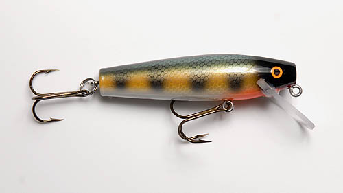 | Perch with yellow belly and the orange strip down the center of the bottom of bait with gold flake on the sides. |