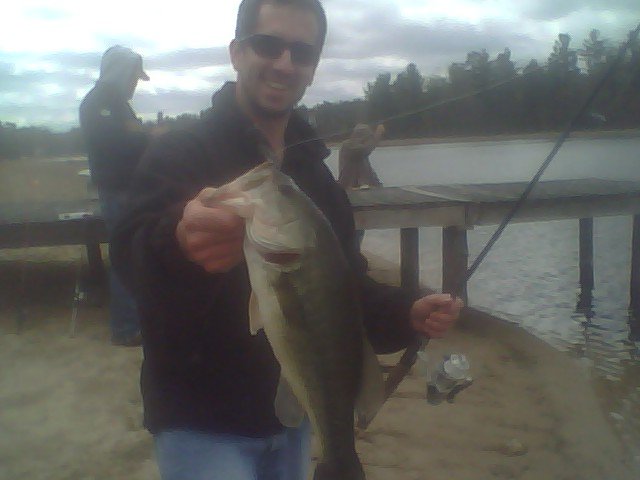 Location: Lake Tomahawk, WI | Bass and walleyes in Vilas. Here's a pic from shorefishing after work with my brother and some buddies last week. Check out the water level, the lake used to be over the pier every year in the spring. Ouch!