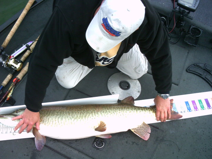 Location: Des Moines IA | Jonesi and I had a pretty good weekend. Placed third in the Iowa Muskie Tourney. I caught 2 46's and a 37. First topwater fish, first Iowa fish, first Weagle fish, and my first fish in the Tuffy I just bought. Also my personal best fish by 2 inches. Here's a couple pics from the Iowa Muskie Tournament Sunday. Thanks again to Hawkeye Guide Service!