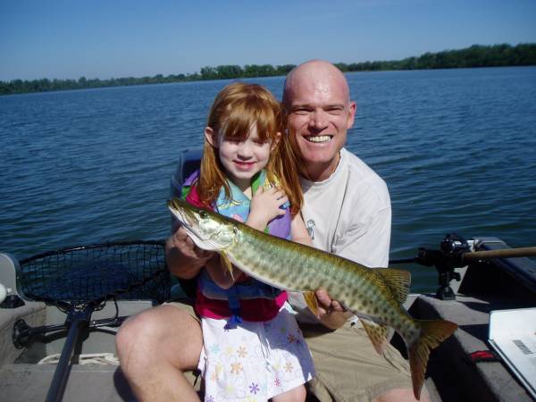Location: Verona, WI | Got out Friday evening trolling on Wingra with the kids. My 4 year old daughter kept claiming she wanted to catch a musky on Wingra. She got her very first musky - this 26 1/2" that hit on a TI Bass Nibbler. My son got his biggest - a 43" that hit on a Dinnerbell trolled behind a weight. Both kids reeled the fish in themselves (though I did have to hold the rod tip up for my daughter!). Very cool evening!