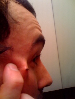 Location: West Haven, UT | Ouch, I feel your pain. I had an experience with a 6/0 3551 mustad in my face over the winter. I also was not fishing. $100 ER copay or push it out and order me a $100 worth of lures. Outcome below