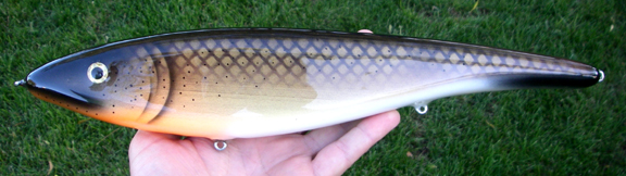 Location: Oregon | Sixteen inches of swinging death! Casts with the gracefulness of a bowling ball! lol But.........when it hits the water, it does have a huge glide. One I built years ago. I think it weighed around a pound.