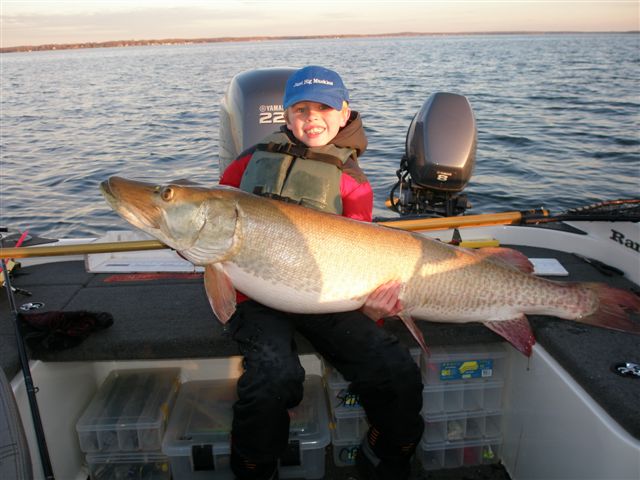 Location: Pelican Rapids, MN | Awesome pic. Mille Lacs is back in a big way! There have been some giants coming out of there this season! Good to see a little fisherman like that hoisting up a fish bigger than himself. It looks like that musky ate the family dog! |