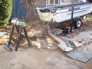 Everything there was in the boat. Beer bottles and cans, anti-freeze jug, a couple of small liquer bottles, lots of walnuts, a bunch of rotted wood, you name it.