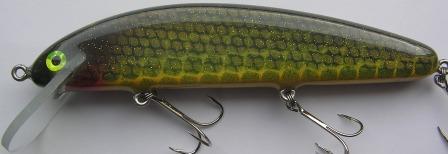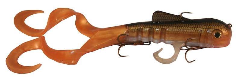 Location: Appleton,WI | Kyle @ Bigwood musky lures will have a selection of custom colored "Twisted Tullibee's" availible in 12" and 16" sizes in his booth in chicago.Pictured is the gold shad.