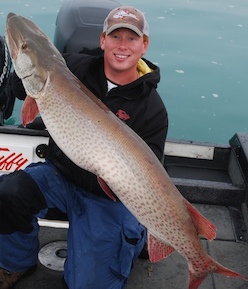 | Hey everybody I just wanted to share with you one of the coolest new lures I have seen hit the market in years. The new double tail Dawgs from Musky Innovations. It is no secret that I am a Bull Dawg nut, however the new double tailed dawgs truly give you a whole new aspect to your soft plastic lineup. Since the first prototypes hit my boat in September they have been consistently producing big fish. One of the most exciting things I have seen about this bait is just how many fish we have caught in areas where numerous other soft plastics, including regular dawgs, have already been casted. Here is a monstrous mid 50 I caught on a double tailed pounder in November.