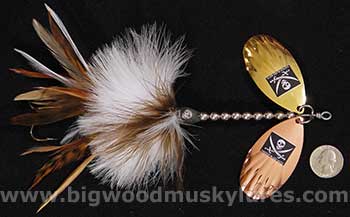 | Does anyone have a pic of the new Musky Mayhem Hurricane spinner? Is it inline or safety pin style? Supposedly 12" long with 5 blades. |