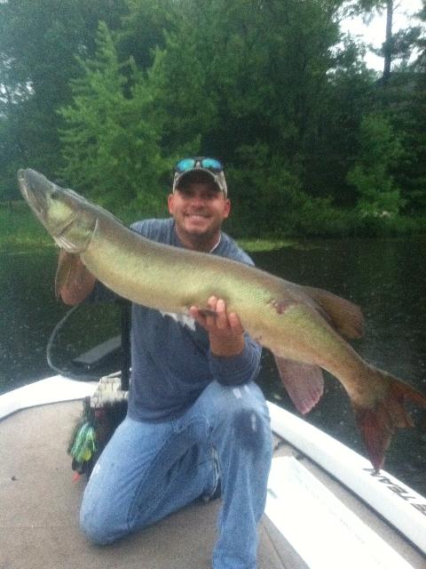 | I just wanted to post a pic of my friend Trav and his personal best musky that i got to net for him early last Saturday morning. We had to hit it hard in a short time and he made it happen about 15 minutes into the day. I have fished with Trav now for the last few seasons and i have watched a good fisherman develop into a great musky fisherman in just two years. No one in the state has worked on his fishing as Travis has and its shows in the quality of the fish he is starting to catch on a regular basis. Good job Travis and thanks for reminding me why i love this sport so much!
