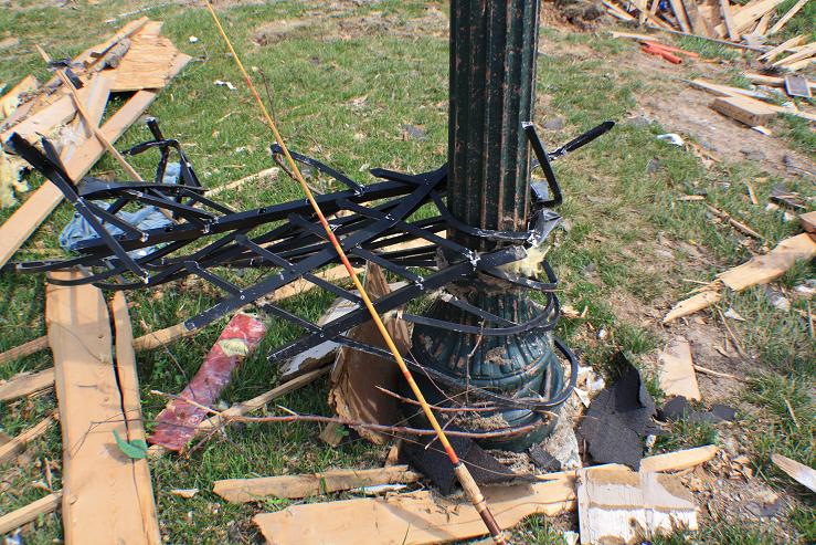 Location: Lebanon,Mo | A well deserved thanks to the members below for donating baits and tackle for Luke Miller who was in the May tornado in Joplin,Mo.I presented the donations to him a couple weeks ago and he was just speechless.Luke and his wife lost everything,but they are alive and well because they took shelter in the basement of there home when they heard the sirens.And it's not the fact it was just the people below who helped,it's the fact it was a community on the internet that most of whom i have never met in person.Below is some pictures i took on the weekend i helped Luke cleanup and move things to storage that were salvageable.This was a very very strong tornado,deadliest single tornado on record.It tracked through the middle of a city and damaged/leveled over 7000 homes,not including businesses.The picture over the pond was where the tornado started to gain strength and every home on the other side of the hill was leveled where the hospital was.The picture with the truck belong to St.Johns hospital and was found over 200 yards from where it was parked,nothing less the picture shows the strength of the EF-5 tornado,very disturbing..Thank you all!!