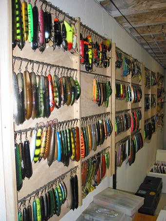 | after going through numerous different musky boxes and homemade storage boxes, i'm starting to think just hanging all on a wall and grabbing a handful when going on a trip is the way to go. especially with all the bigger baits. keep a few big plano boxes around, grab some lures and go...and much cheaper. |