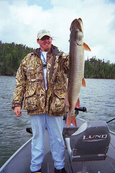 Location: Bloomington, IL | A 34" in 1997 for me. I had been to Canada several times as a kid, but not muskie fishing. In 1997, I finally made it back up to Canada when a guy worked with invited me up with his group. We went to a lake in the Vermilion Bay area. On the way up, I bought a Cisco Topper, a couple Mepps, and a 6" Hi-Fin Trophy Minnow (in Orange Tiger). I caught a 34" my first day on that Trophy Minnow. In fact, I caught 3 my first day on it. I caught 9 for the trip my first trip up there muskie fishing (all on a 6'6" MH spinning rod), capped by a 44" toward the end of the trip - by far the biggest fish I had ever caught at the time.
